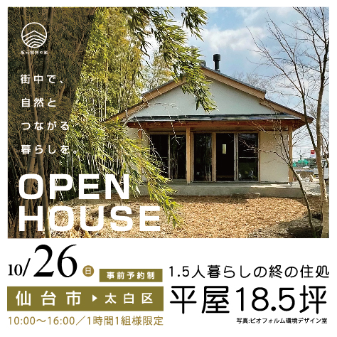 仙台市太白区にて、10/26に「坂元植林の家の平屋」見学会を開催いたします。