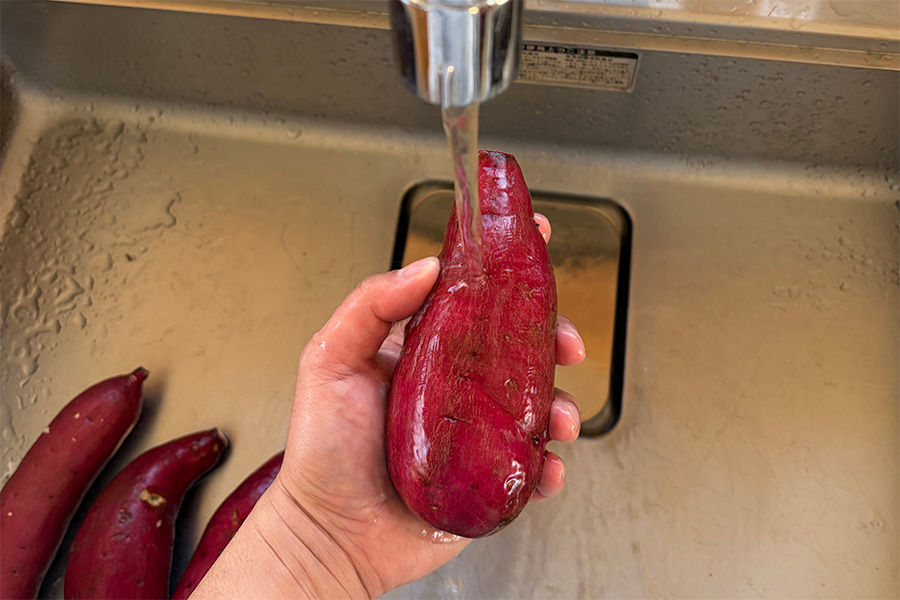 まず芋を洗い、