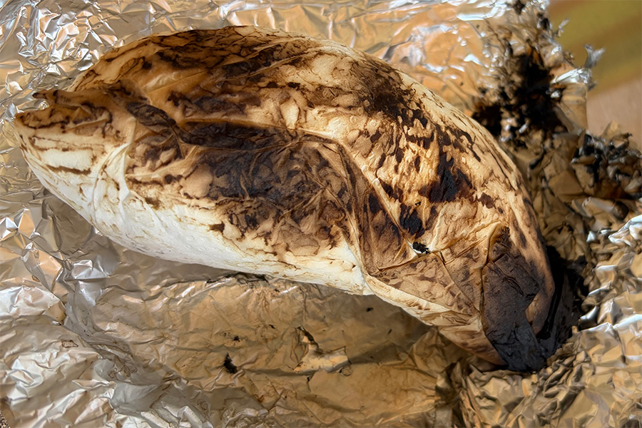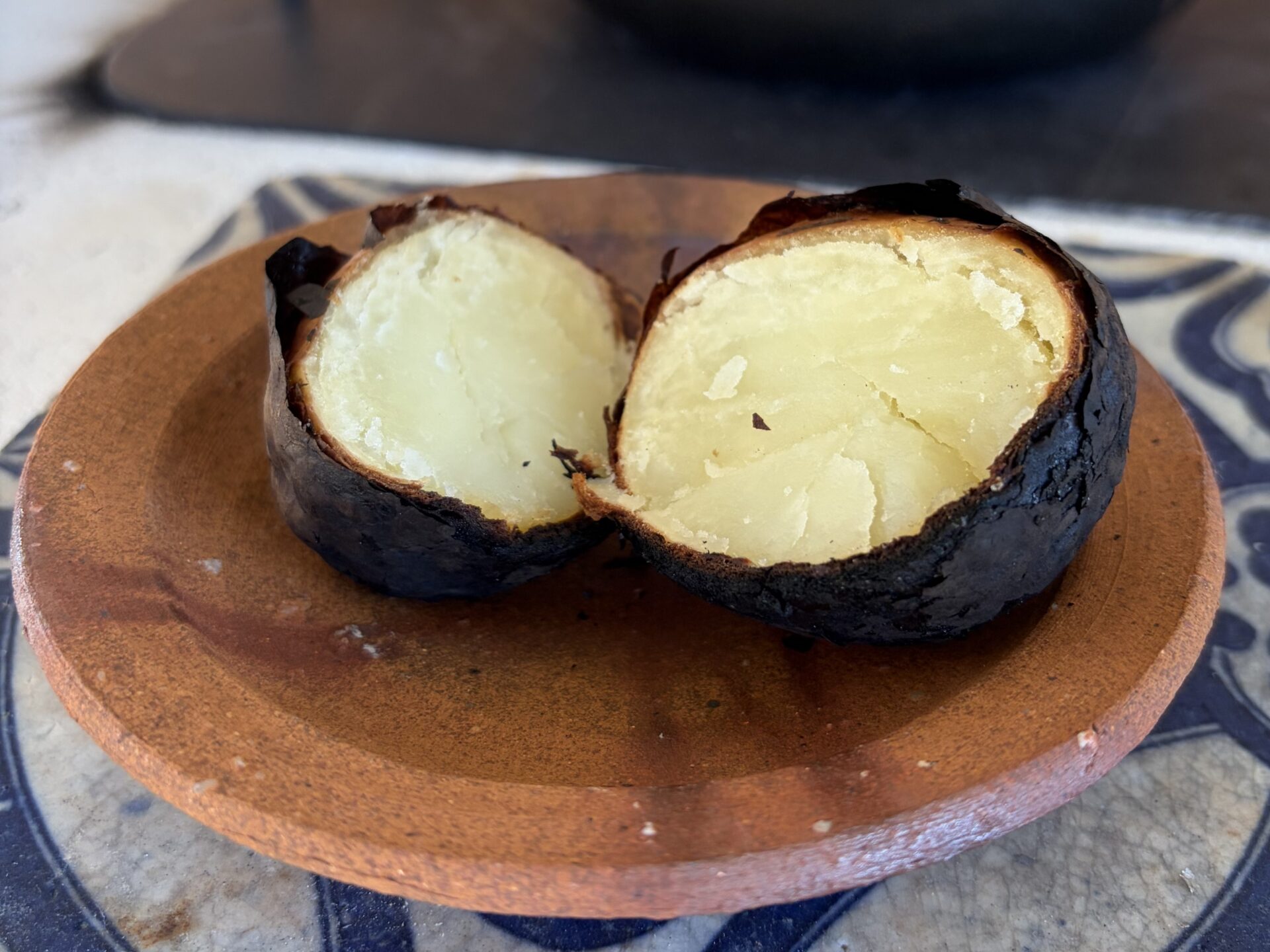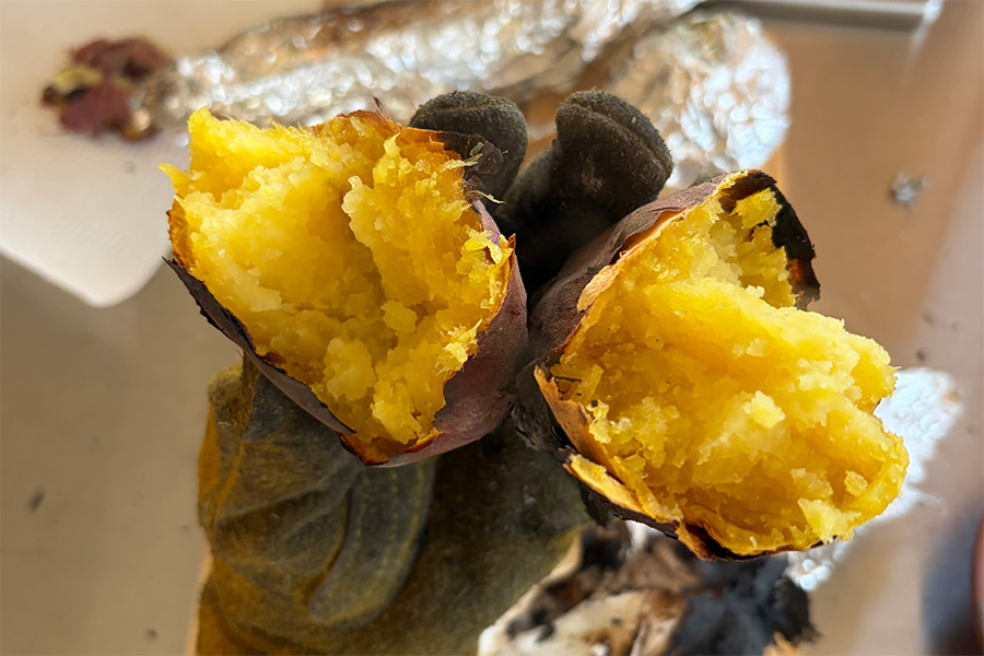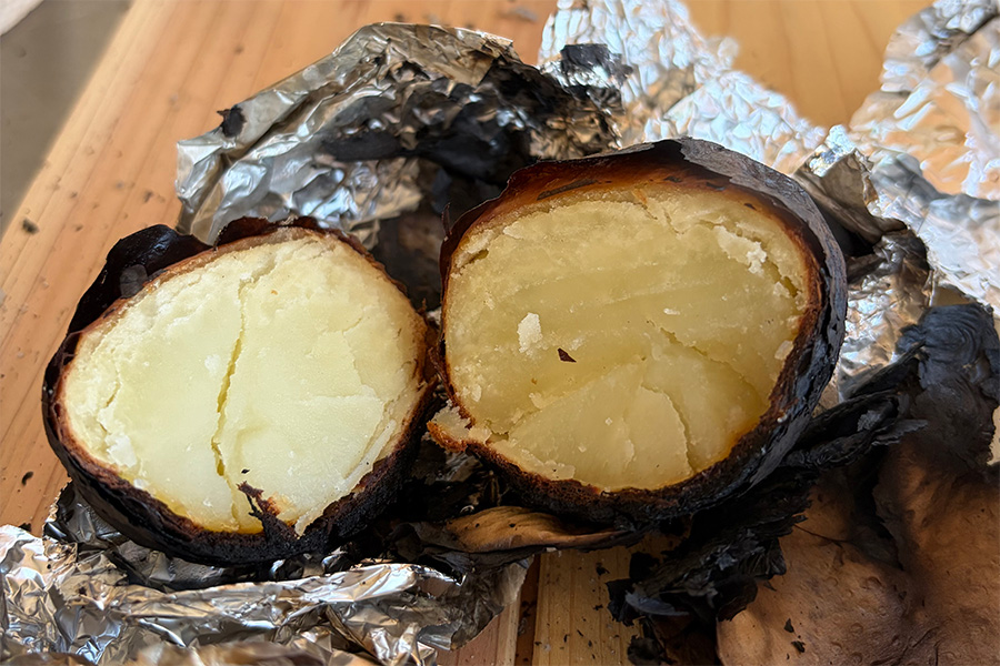 ジャガイモは外側が少し焦げてしまいましたが、