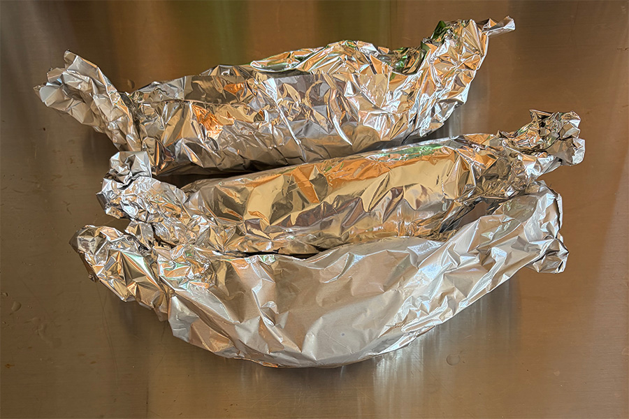 そのうえからアルミホイルで包みます。