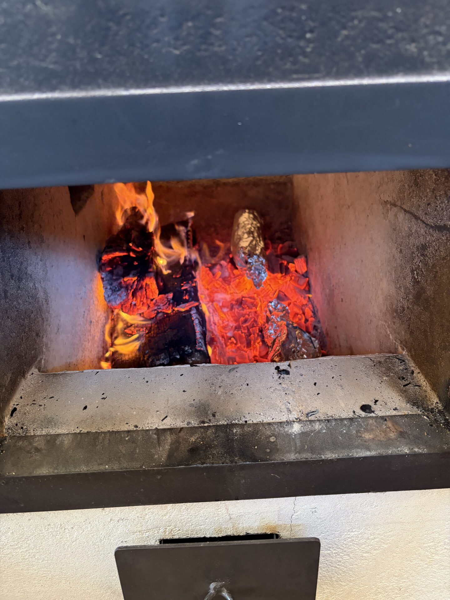 それを熾火のそばに置き、45分~60分くらい置いておきます。