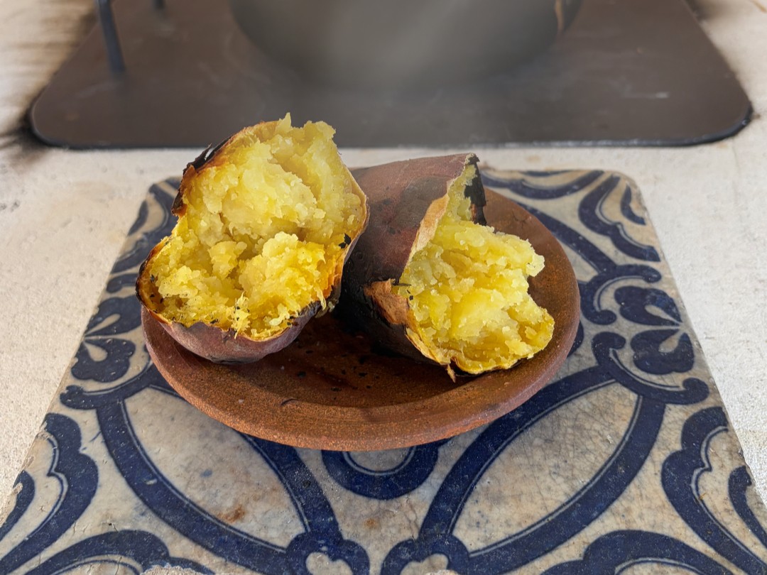 先日、ペチカの熾火で、焼き芋を作ってみました。